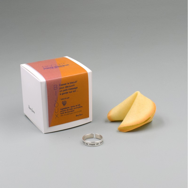 Cette bague en argent ou en or est cachée dans un biscuit porte-bonheur, enveloppé dans une petite boîte...