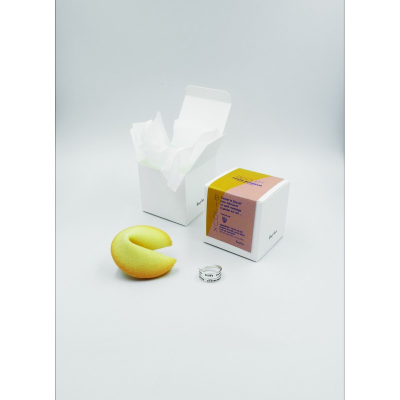 Bague en argent cachée dans un fortune cookie* et livré dans une petite boîte...