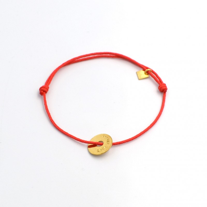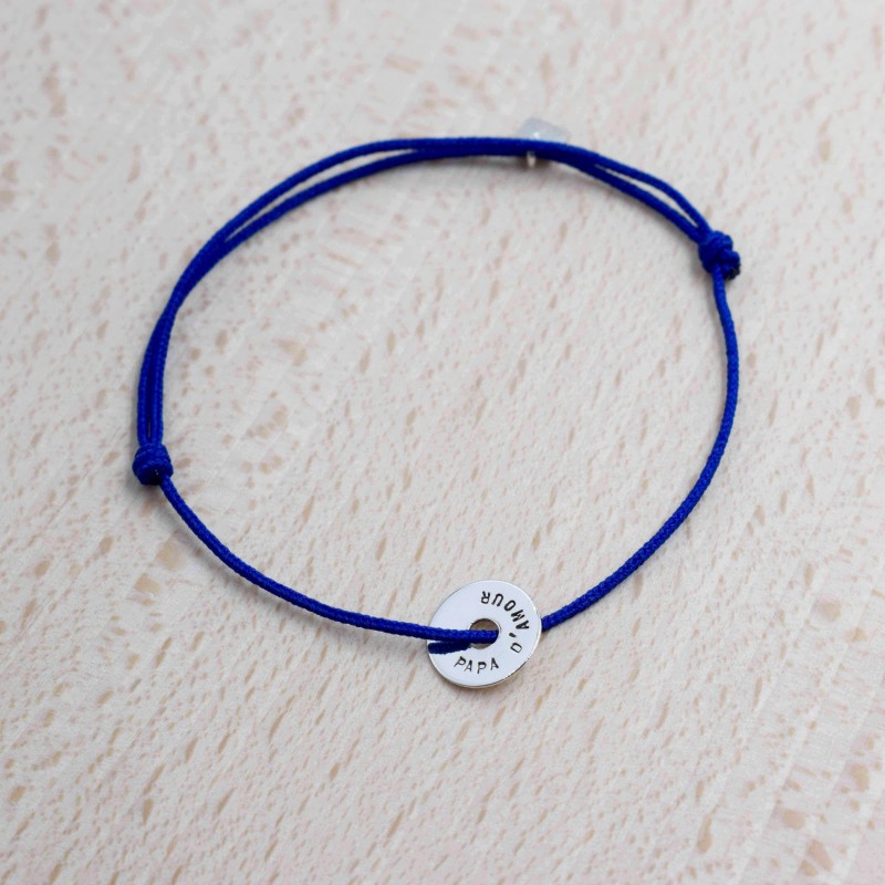 Un petit jeton sur lequel vous pouvez inscrire un mot, un prénom ou une date à porter sur un bracelet cordon ajustable.