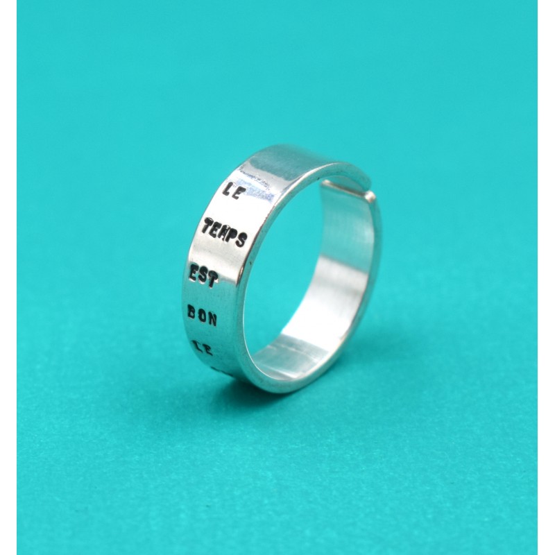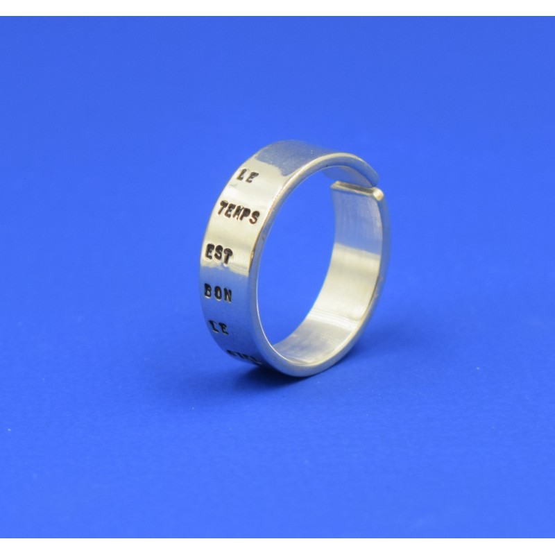 Large bague homme ouverte, réglable,sur laquelle vous pouvez inscrire jusqu'à 20 mots de 6 caractères maxi, les mots sont écrits verticalement sur la bague.