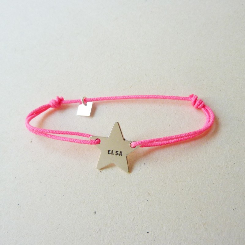 Pense-bête en argent 925 (1 g - diamètre 1,5 cm) ou or 18 carats (sur devis) en forme d'étoile pour enfant sur cordon - 17 couleurs de cordons disponibles