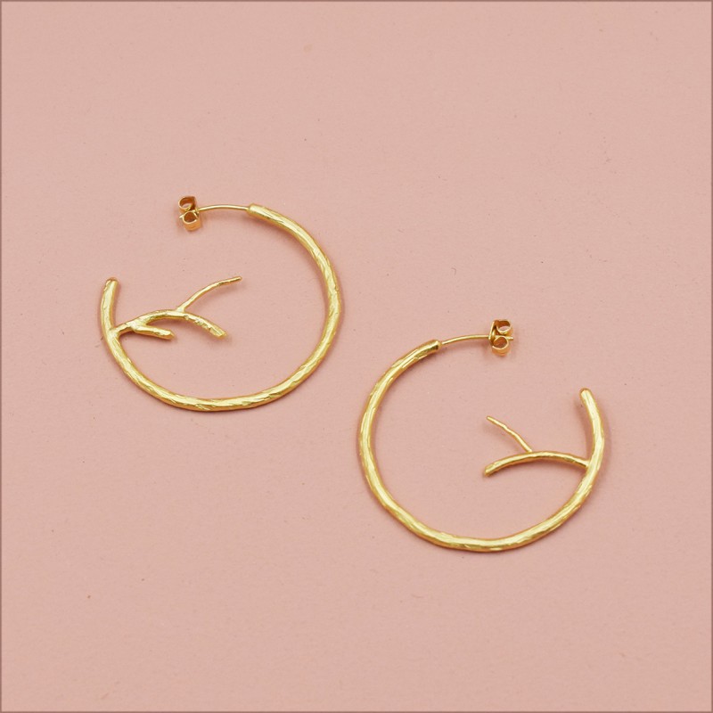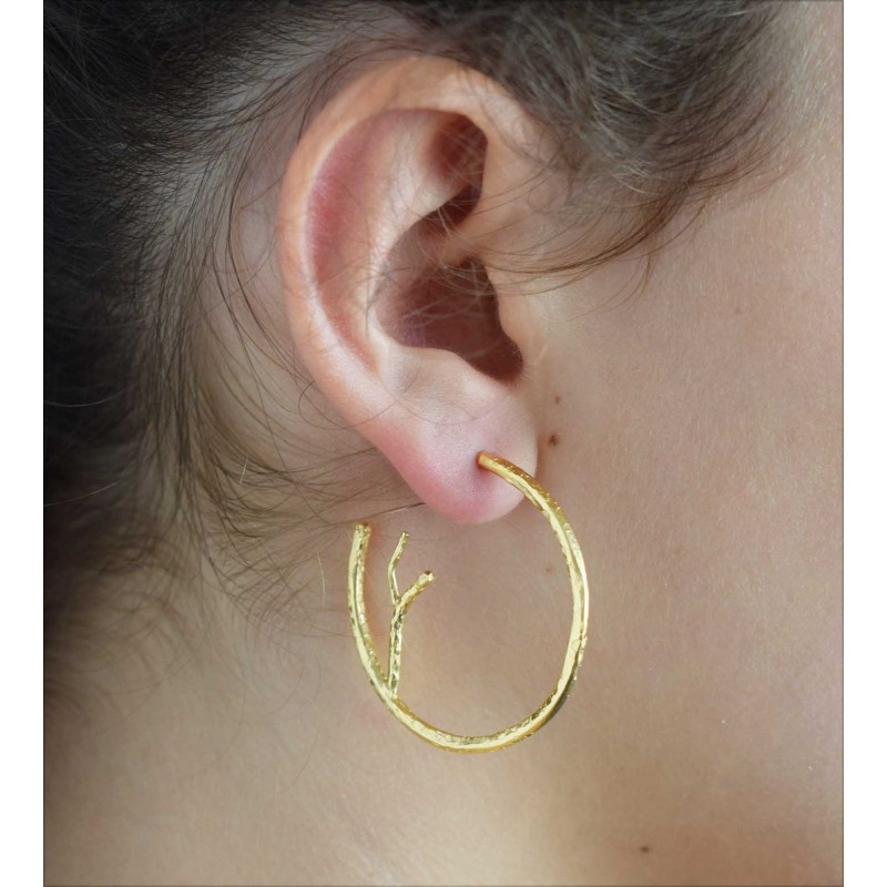 Boucles martelées à la main, en laiton doré à l'or fin. Finition mate.