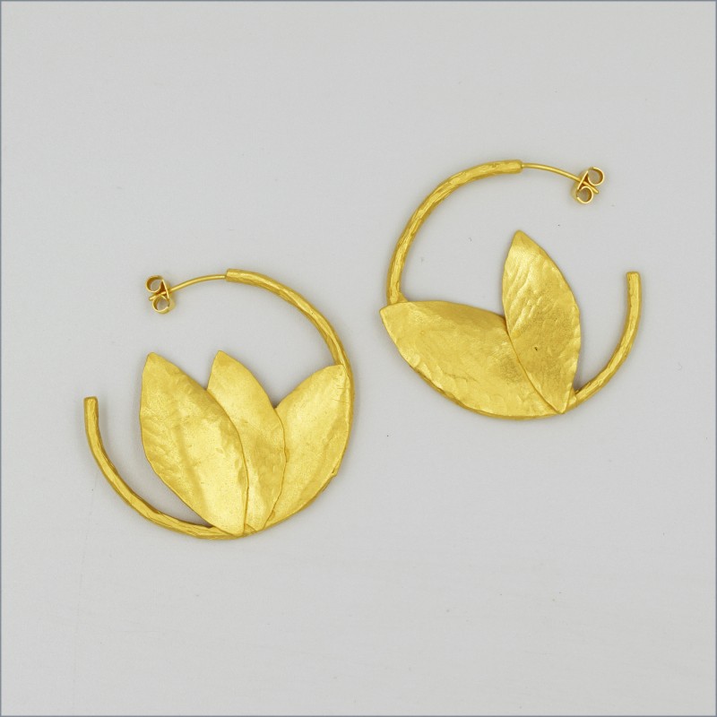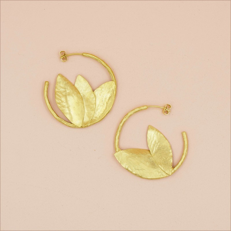 Boucles martelées à la main, en laiton doré à l'or fin. Finition mate.