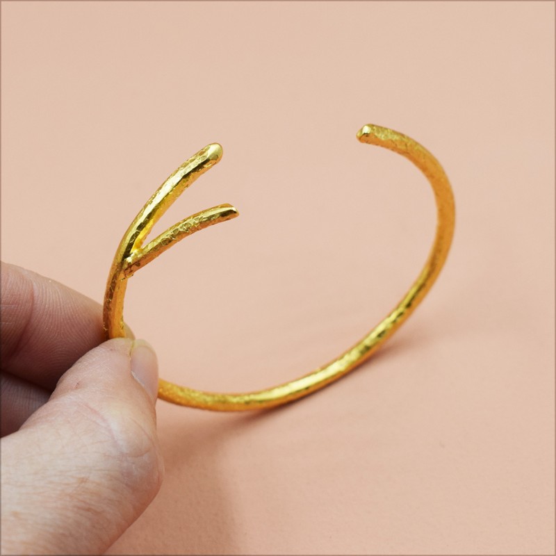 Bracelet martelé à la main, en laiton doré à l'or fin. Finition mate.