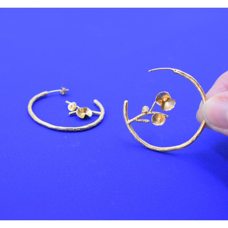 Boucles martelées à la main, en laiton doré à l'or fin. Finition mate.