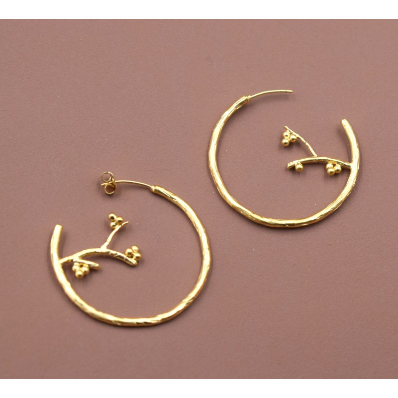Boucles martelées à la main, en laiton doré à l'or fin. Finition mate.